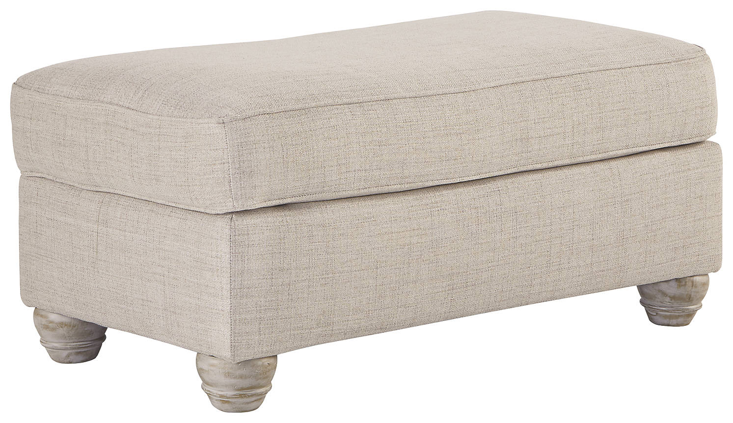 Find your footing with this beautiful ottoman featuring quality Benchcraft® construction. The extra-soft, linen-weave upholstery supports your feet, while the sturdy, corner-blocked frame guarantees years of relaxing enjoyment. Discover endless elegance in the faux wood turned feet and delicately light cover. Combine your chic and rustic sensibilities in this beautiful Traemore ottoman.