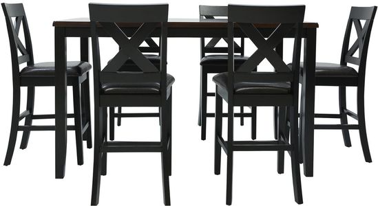 Liberty Thornton II 7 Piece Gathering Table Set with tapered legs and upholstered seat in black vinylRead More
