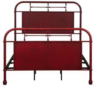 Add a unique look to your home with the Vintage Series Full Metal Bed. Crafted of metal tube and finished in a beautiful antique red with wear thru. The headboard and footboard feature a softly shaped cap rail and turned metal spindles highlighting a center panel. The metal side rails and bed slats are finished in the antique red with wear thru. The Vintage Series headboard will work with a metal bed frame making it perfect in small spaces and any decor from cottage to farmhouse.Read More