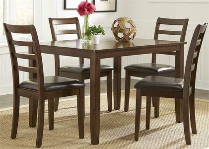 Liberty Hampton 5 Piece Rectangular Leg Table Set with tapered leg design and black vinyl upholstered seatsRead More
