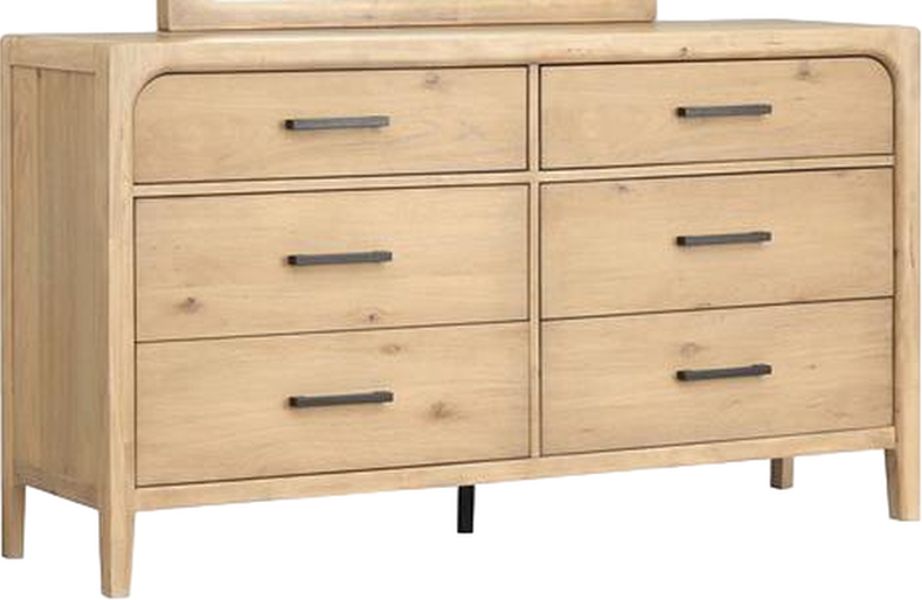 Smart storage pieces complete the look while ensuring clothing and clutter can be organized with ease. Finished in a soft shade of Butternut that accentuates its knotty White Oak veneer patterns, these gorgeous bedroom designs feel modern yet timeless. Bold graphite hardware provides contrast to the relaxed finish and adds another layer of visual interest to the case pieces. Together, the design elements of the Somerset bedroom collection combine to create a serene atmosphere that feels like an oasis from the outside world.