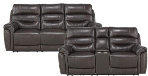 Dark brown top-grain leather match covers the plush seating of the group. Dual reclining ends create a comfortable platform for your relaxation with the touch of a button, which engages the power-driven reclining mechanism. Nailhead trim defines the profile of each piece in the collection.Read More