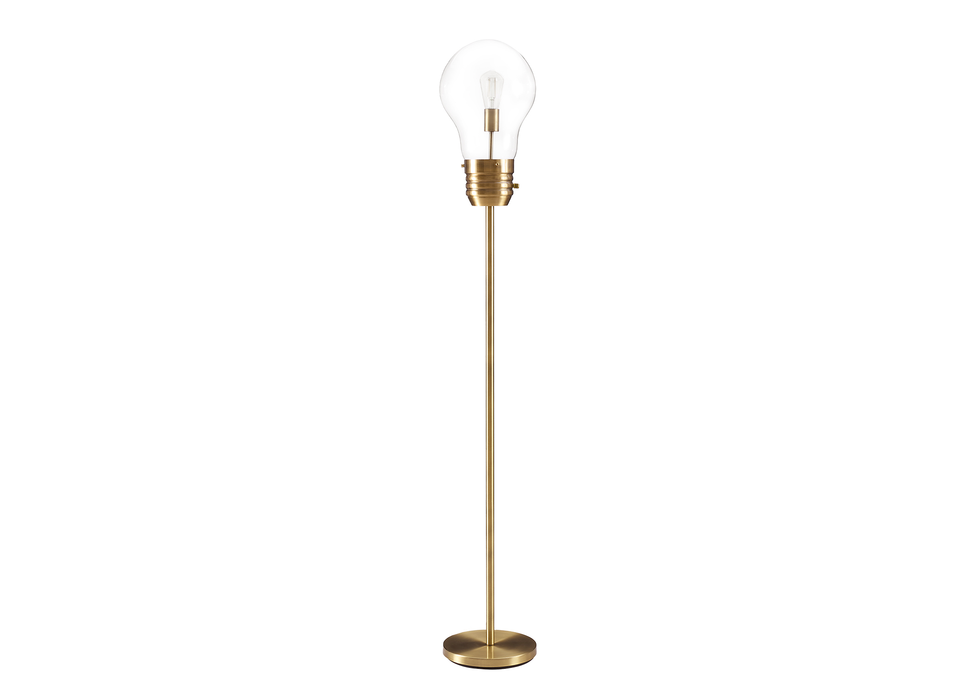 Add a refined, decorative touch to your space with this 71" high floor lamp, featuring a sleek antique brass metal finish and a minimalist exposed bulb design