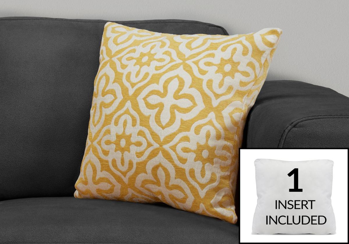Bring an instant update to your home décor with this stylish square accent pillow in a contemporary geometric design. The trendy two-tone yellow and white motif brings pizzazz to a cozy chair, sofa, bed, or entryway bench.Read More