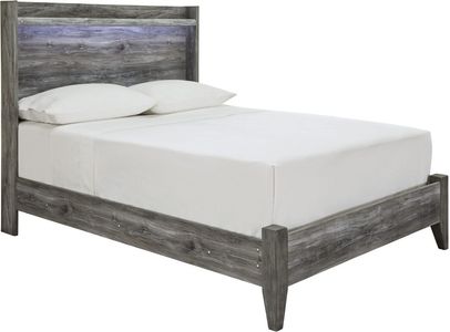 Rest in the casually cool style of this full panel bed. Its driftwood and smoky finish and cool LED lighting give this bed an easy-going vibe perfect for setting the scene of a relaxed getaway. Clean lines and modern handles provide a fuss-free look. Mattress and foundation/box spring available, sold separately.Read More