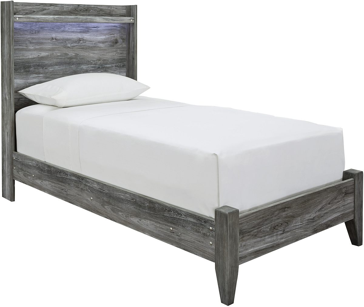 Rest in the casually cool style of this twin panel bed. Its driftwood and smoky finish gives this bed an easy-going vibe that's perfect for creating a relaxed getaway. Clean lines and modern charm blend for a fuss-free look.Read More