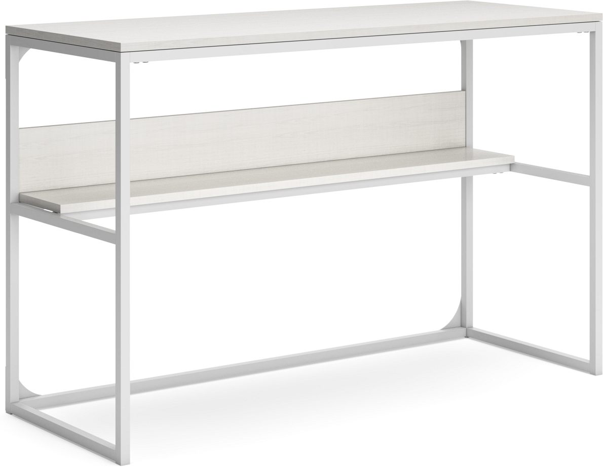 Bring your vision of a modern home workspace to life with this sleekly designed home office desk. Its linear construction and white finish keep things minimal. A small shelf along the back rounds out the versatile, striking desk.Read More