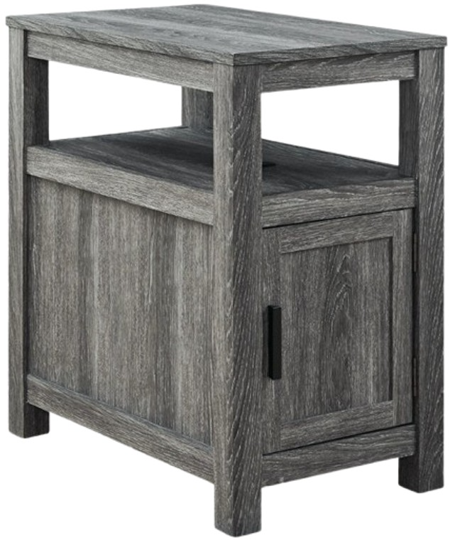 Keep entertainment essentials like remotes, coasters and more close with the handy storage cabinet. Battery running low? Built-in USB ports keep easy charging at your fingertips and with the table's replicated weathered gray finish, it has the versatility to pair with aesthetics from casual to farmhouse.Read More