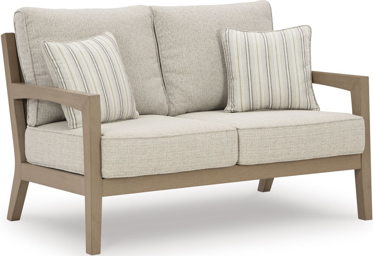 This loveseat is a beautiful addition to any outdoor living space. Effortless in its simplicity, this piece echoes your easygoing sensibilities. Combining durable, cutting-edge engineered materials, its Weatherwood construction enhances the contemporary design.Read More