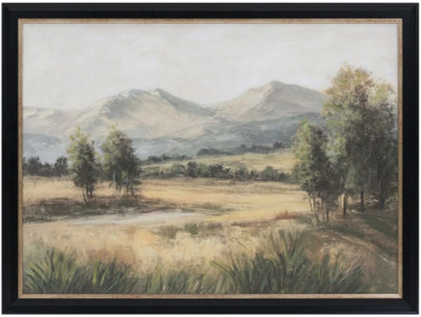 A serene wall accent featuring soft, nature-inspired hues — greens, ochres, grays, and blues — that evoke a calming landscape ambiance. Hung horizontally, it offers subtle visual depth without overpowering the room. It’s ideal for setting a peaceful tone above a sofa, bed, or hallway console, gently unifying surrounding décor.Read More