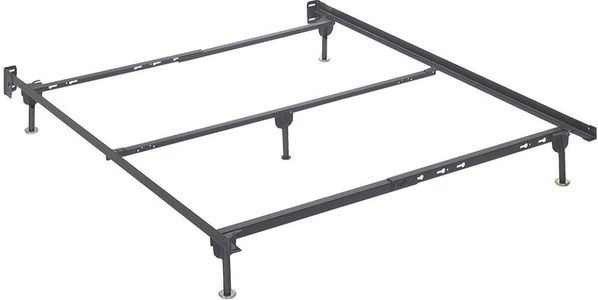 This sturdy metal bed frame provides reliable support for queen-size mattresses and box springs, ensuring long-lasting durability. Designed with universal bolt-on connections, it easily attaches to most standard headboards. Its strong construction helps prevent sagging, offering a stable foundation for a comfortable night's sleep.Read More