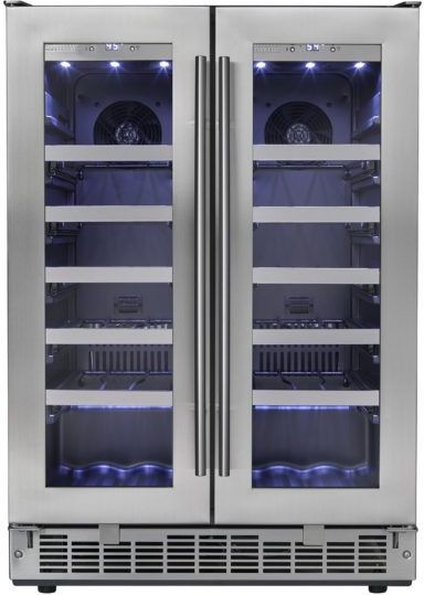 French door design allows for two independently controlled temperature zones and will store up to 42 (750 ml) bottles of wine, 21 bottles in each zone. Precise digital thermostat with LED display can be set and monitored through the door.