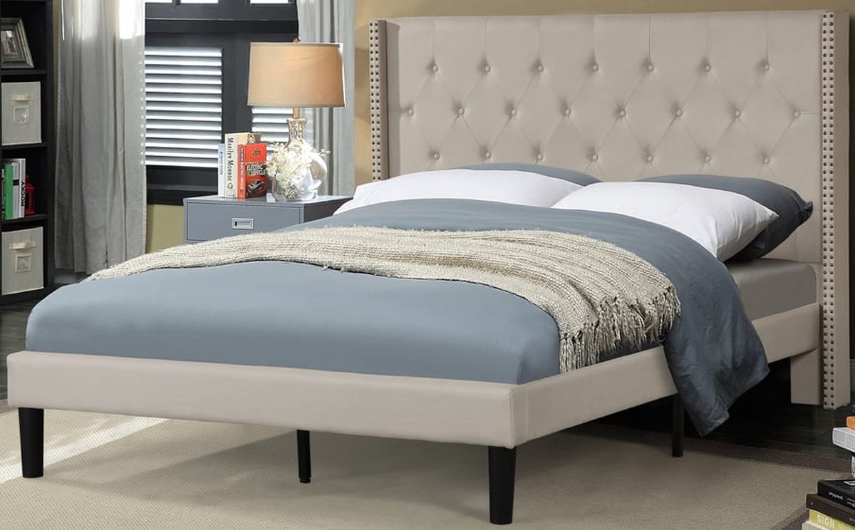 You’ll never want to leave your bedroom with this appealing platform bed. Features include button tufting, and nailhead trim wings, and the choice of beige or grey linen.Read More