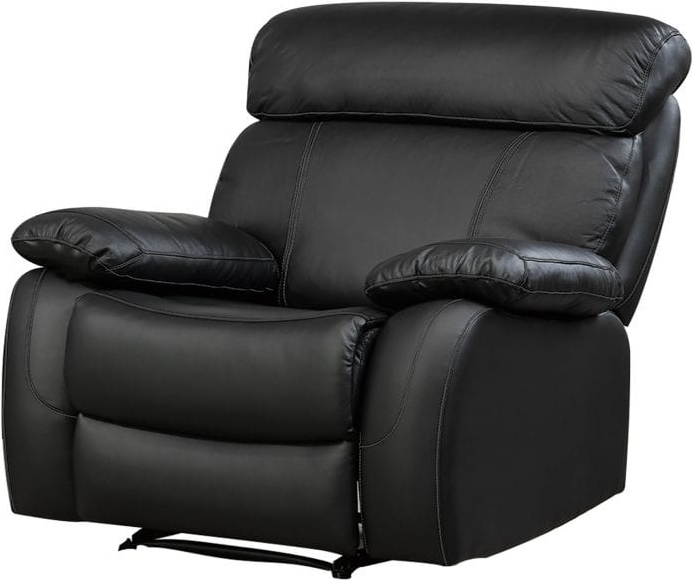 The perfect addition to your room, this black, genuine leather/match chair not only makes a visual impact, but is designed for the ultimate relaxing, reclining experience. Includes saddle seating and full chaise pad for extra comfort.Read More