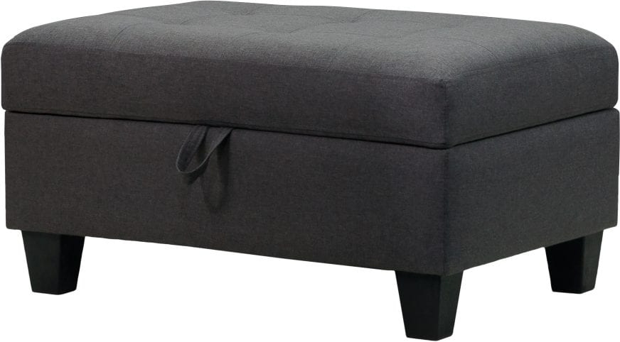 Add an accent piece with purpose. This neutral charcoal coloured storage ottoman will be the perfect accessory for your living room. Features a soft, tufted top and large storage well.Read More