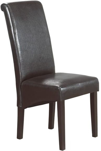 This dining chair adds a contemporary look and feature a high-back design with an espresso leatherette finish. Extra padding offers comfortable seating, while the espresso rubberwood legs provide stability and durability. An ideal way to update your decor at great value.Read More