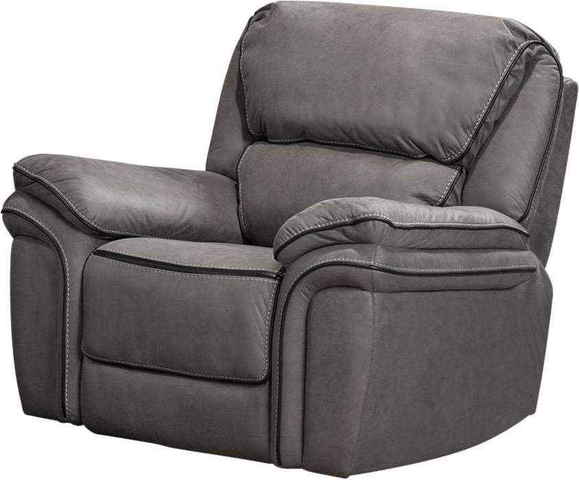 Providing the ultimate in style, comfort and convenience, this recliner chair features memory foam seating and overstuffed cushions. Full recliner with glider function. Draped in smoke padded micro-suede fabric.Read More
