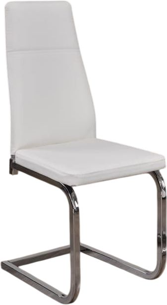 You and your guests will love their dining experience with these modern design dining chairs. With unique, wrap around legs and cushioned high backs, your dinner parties will last all night in comfort! Draped in stylish white leatherette with chrome finish legs.Read More