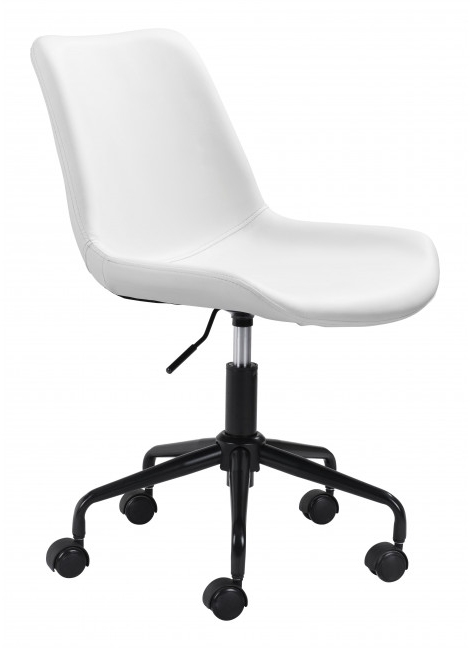 The Bryon Office Chair has mid century modern urban lines and looks great in any space. The solid steel frame is powder coated with a matte black finish with h a heavy duty vinyl covering. This chair fits in any room, or home office, or even as a bedroom accent chair.