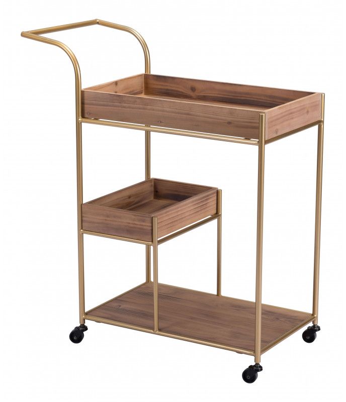 With a nod to Mid-Century design, this bar cart has all of the clean-lined aesthetic reminiscent of that modern era. Two removable trayed shelves and a flat base shelf make this cart super functional and perfect for tableside serving. Its black casters have a stopping mechanism so you can roll when you want to.Read More
