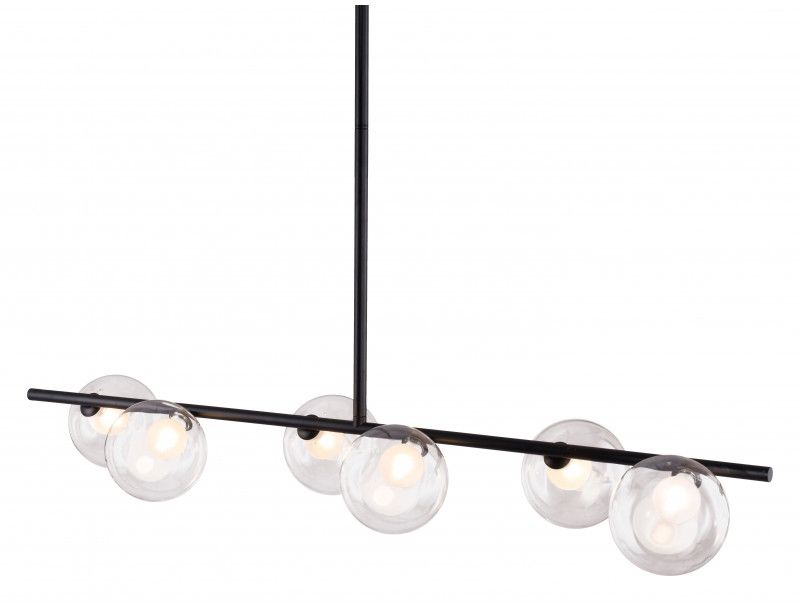 Modern meets deco in the Zatara Ceiling lamp, it has a matte black steel body with clear glass shades. This lamp will elevate any space, living area, hotel lobby, or modern maximalist kitchen.Read More
