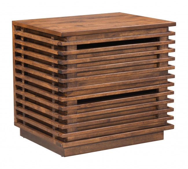 Inspired by Scandinavian modern design, this slatted two-drawer nightstand and end table in solid fir wood and walnut veneer is a handsome addition to any bedroom. Each drawer top has a wide space allowing for easy access with no hardware required. Sturdy construction keeps it stable when in use. Beautiful linear slats are on the front and both sides. Pair with the Linea bed, dresser and high chest.Read More