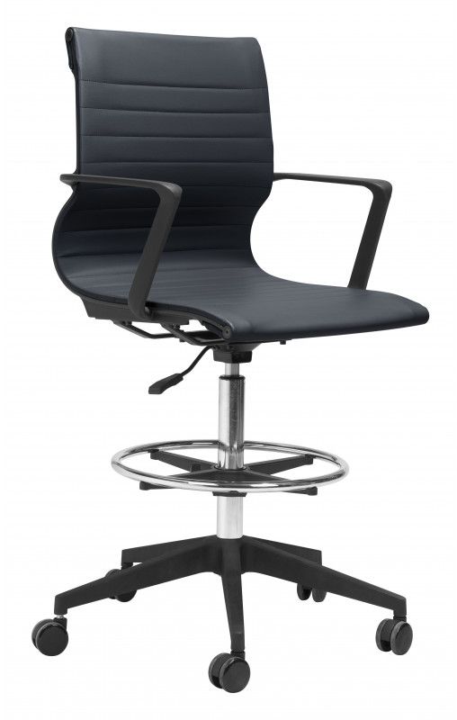 A modern look at a Mid-century classic, the Stacy Office Chair has a polypropylene frame, armrests, rolling base and is covered in vinyl or polyurethane mesh seat sling. This chair has an adjustable footrest. A drafters chair that is perfect for any home or office space.Read More