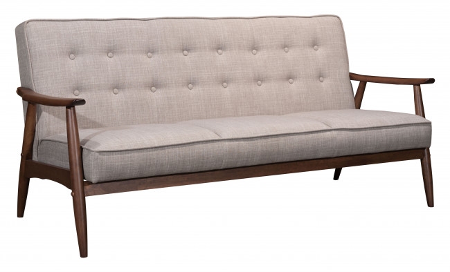 Add sleek simplicity to any living space with our Rocky three-seat modern sofa in soft, durable putty-grey linen-like fabric. Perfectly pitched for comfort with its sturdy, solid wood frame, angular legs and sloped arms. Both the seat back and seat cushion is button tufted with a self-welt. Pair this handsome, compact sofa with the matching Rocky Arm Chair (sold separately) to complete your room. Also available in white or black faux leather.Read More